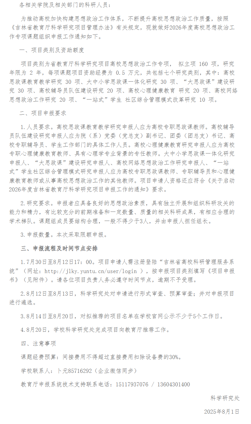 下一篇:关于2026年度吉林省教育厅科学研究项目申报工作的通知