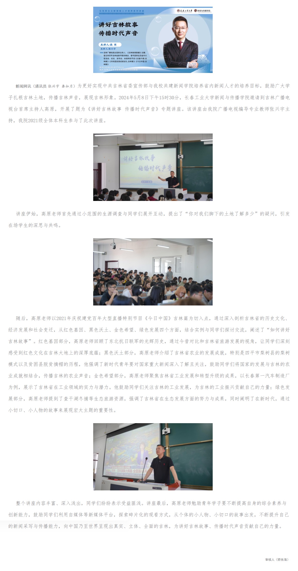黄色直播 马克思主义新闻观人才培养系列讲座 讲好吉林故事 传播时代声音