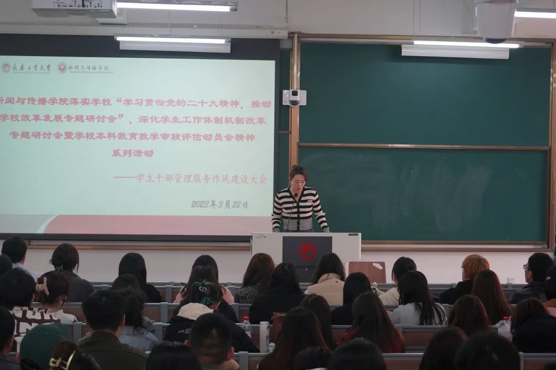召开学生干部转变管理服务作风建设动员大会,学院党委副书记周巍以及全体辅导员、学院所有学生骨干100余人参加了会议。会议由团委负责人崔悦主持。