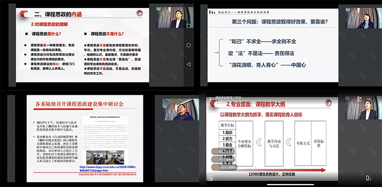 此次“课程思政”教学工作坊的举办是为推动课程思政与专业课程教学的融合,深入挖掘专业课程“思政元素”,充分发挥课堂教学育人主渠道、主阵地的作用,挖掘和丰富专业课程育人内涵,进一步提升教师全方位育人水平。我院教师们认真收看了此次直播,并且一致觉得受益匪浅,纷纷表示,要进一步树牢人才培养中心地位,扎实推进教育教学改革,深入挖掘课程和教学方式中蕴含的思想政治教育资源,强化价值引领,使思想政治教育元素有机融入专业课程,实现思想政治教育与知识体系教育有机统一,突出立德树人成效。