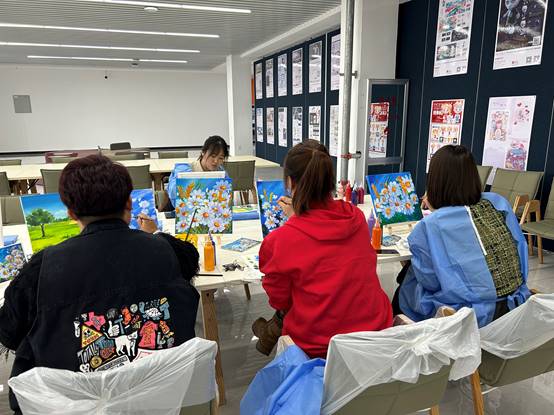 学校妇委会为了丰富女教工文化生活,舒缓工作压力,搭建交流平台,提升教职工艺术修养,进一步推进校园文化建设和美育教育,10月25日中午,在北湖西区博厚图书馆开展“丹青绘出心 巾帼绽芳华”油画体验活动,我院女教工积极参加了此次活动。